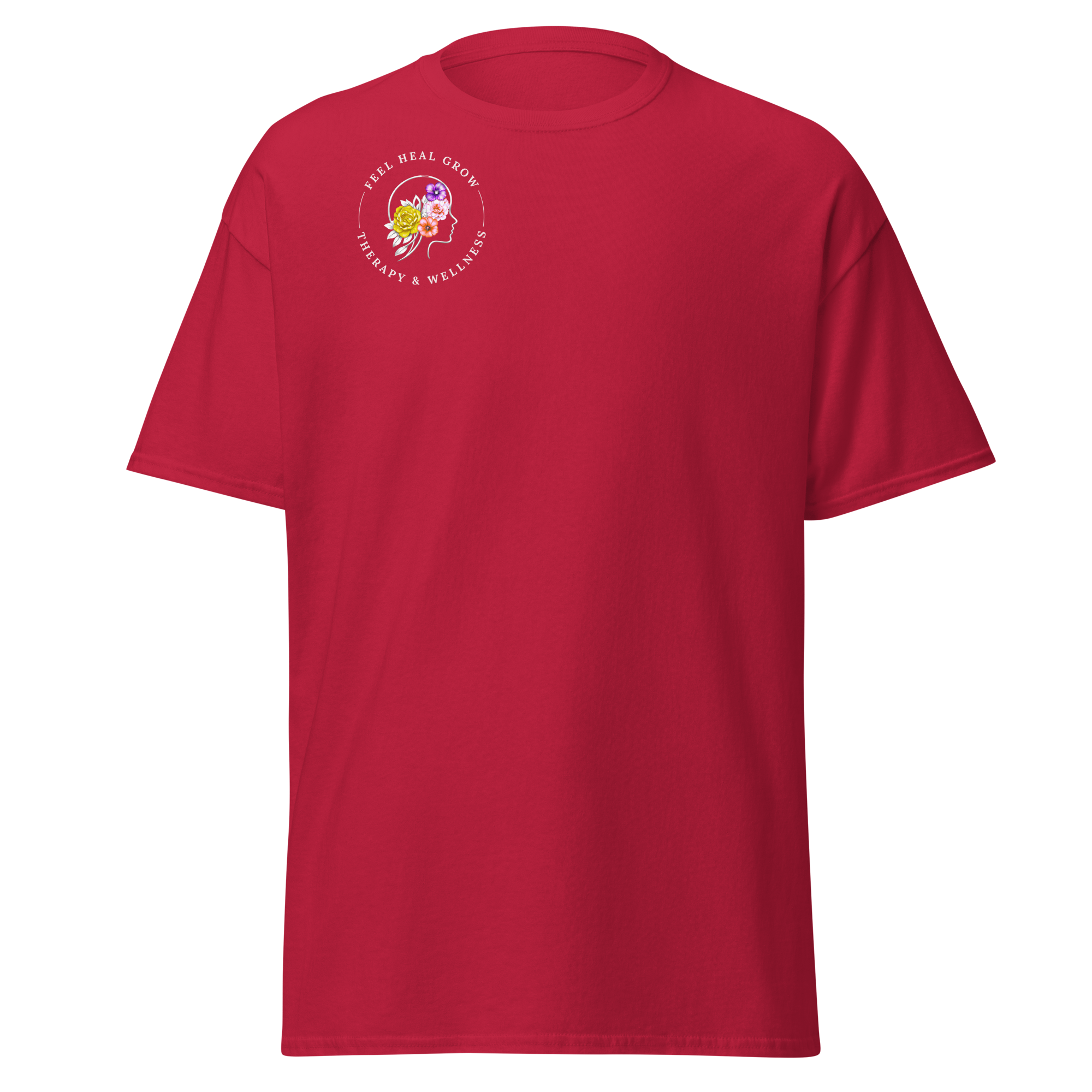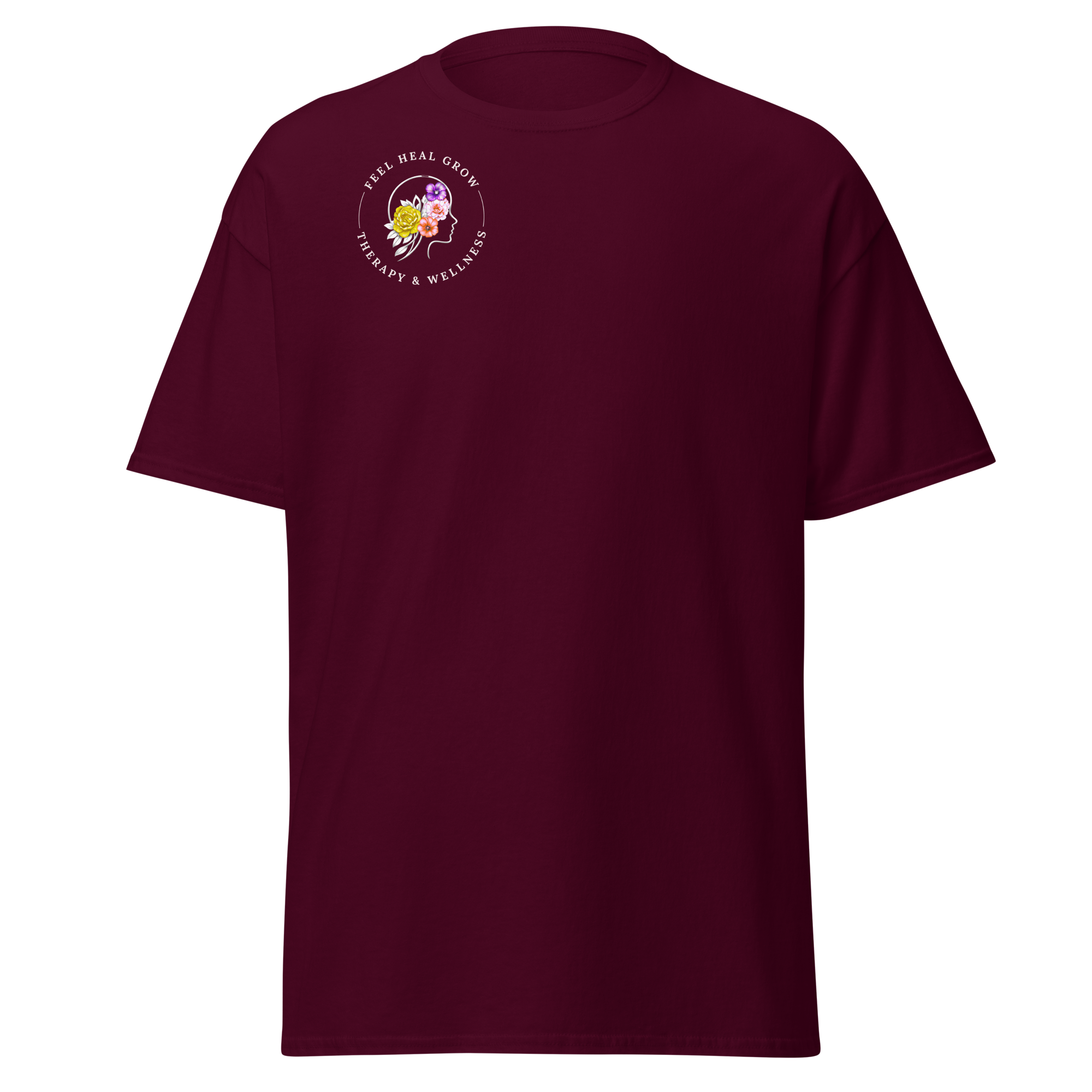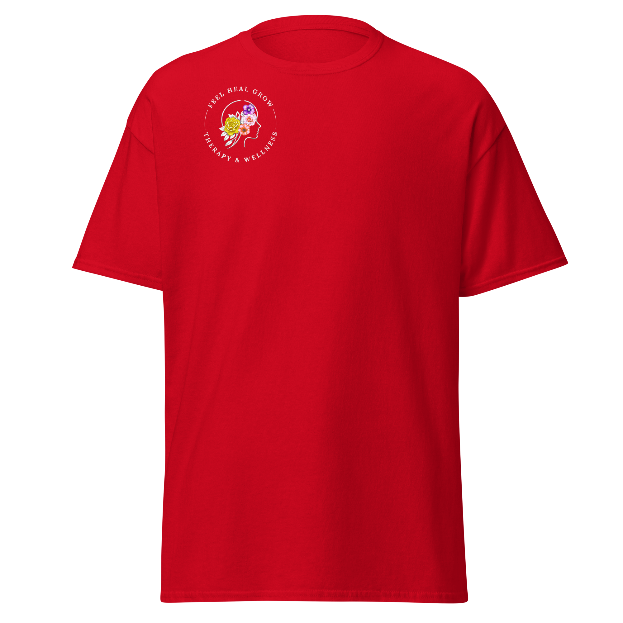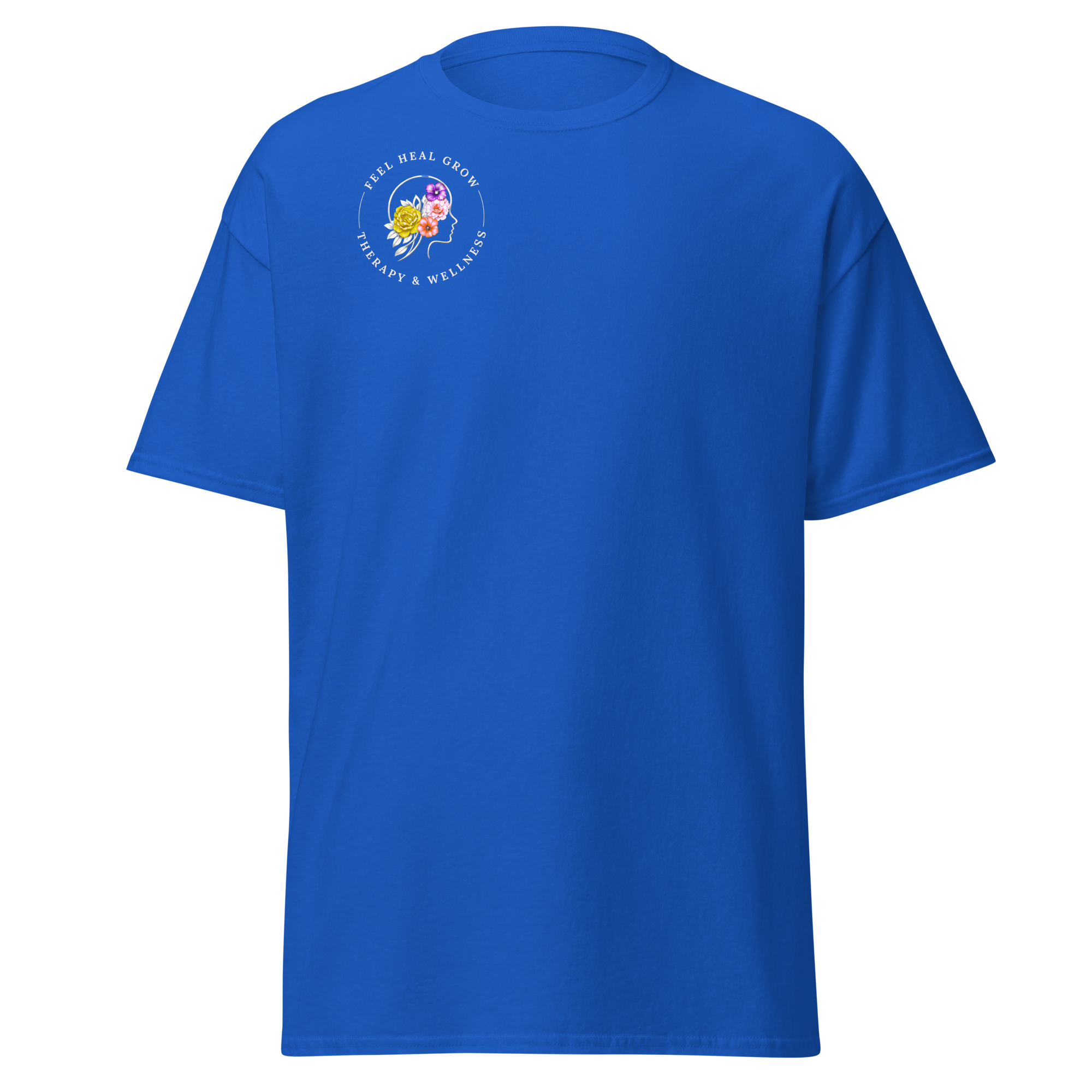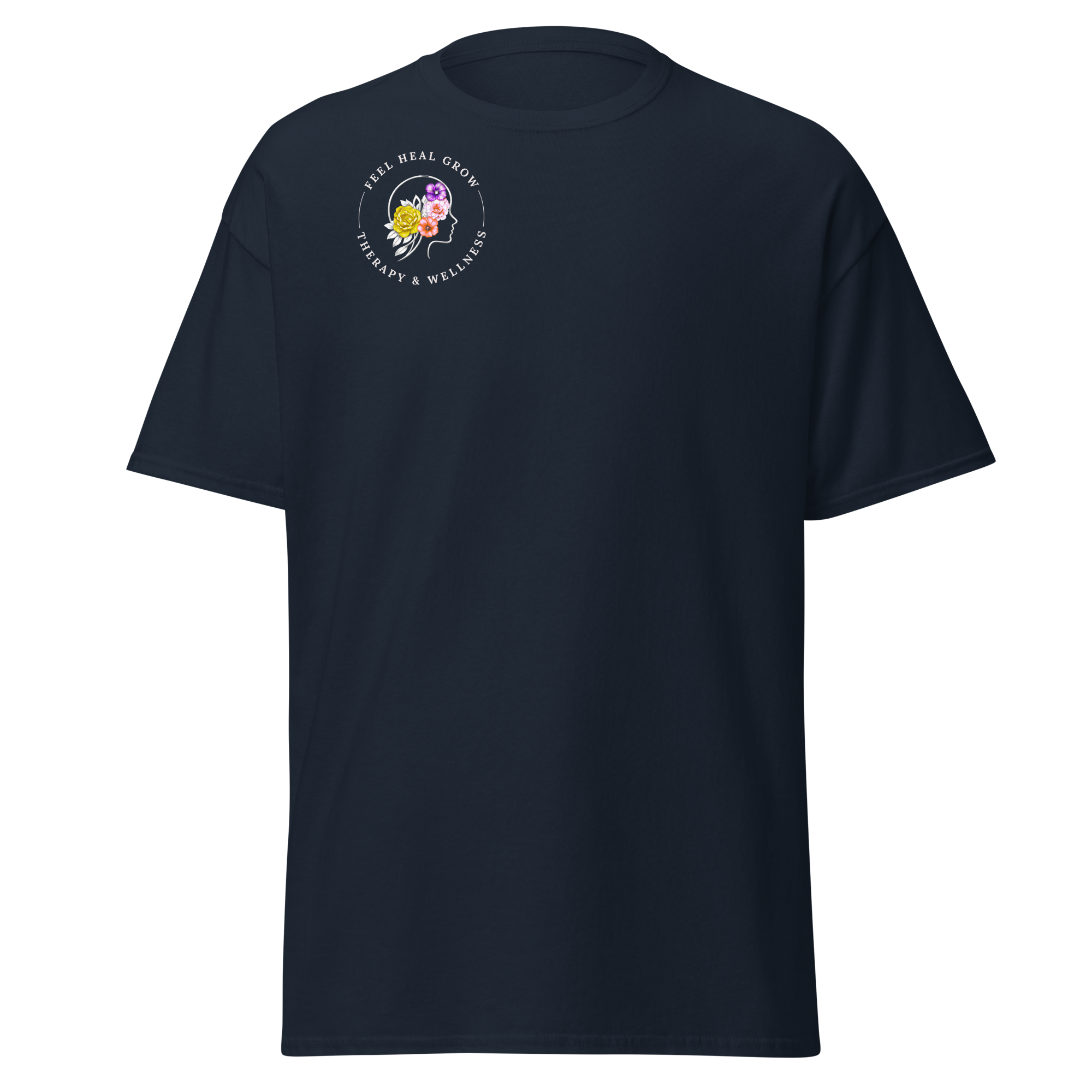 A soft, everyday reminder that healing is possible. This women’s tee features the Feel Heal Grow Therapy & Wellness logo on the front, with a floral peace sign and the words “From Panic to Peace” on the back—symbolizing the journey from overwhelm to grounded calm. Designed for comfort and intention, it’s perfect for wherever you are in your healing process.